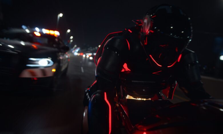 Another thing Tron: Ares ignores about the Tron series is that The Grid is a world that houses games. Even in the government coup plot of Tron: Legacy, all that programs do in The Grid is play games, which gives the series its iconic Identity Disc frisbee weapons and wall-generating Light Cycles. These elements, alongside a new suite of tanks, drones, and flying machines, are all present in Tron: Ares, but the games are gone, replaced purely with warfare. The Light Cycles, for instance, are used in one chase scene, where Ares and Eve use the walls—large beams of light that act as a physical barrier—to try and slow one another down. The walls are actually used all over the place in Tron: Ares, with all the drones making them as they fly around. Instead of the bright blue, vibrant world of the first two films, Tron: Ares is dark and red. The Dillinger Grid is oppressively red, and shots in the real world take place almost entirely at night, creating a very negative viewing experience.